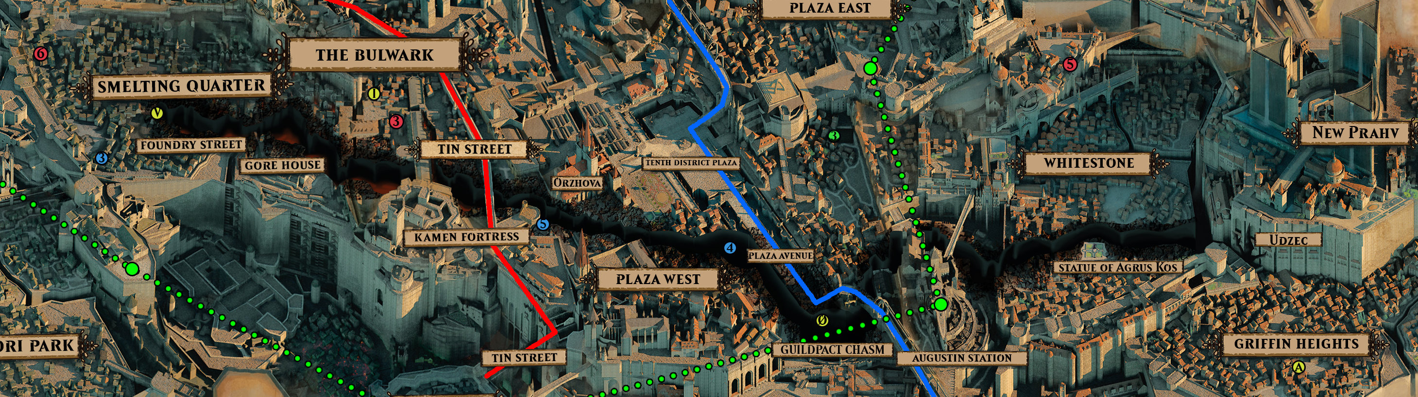 Slowly things started to come together and we found old Izzet blueprints about an old canceled underground railway going from the smelting district all the way to New Prahv. The tunnel went really close to Orzhova and we found indications that this sounded like the intended target from the encoded messages in the newspaper.